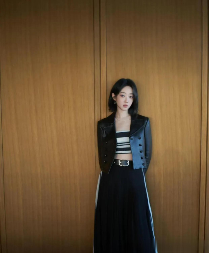 米兰 蒋梦婕短发真漂亮! 短外衣+条纹抹胸+半身裙, 文静洋气又高等!